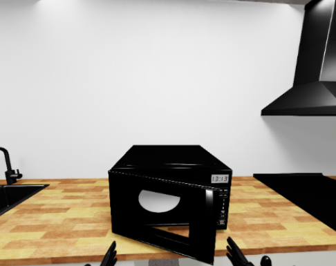 1. Complete the task by opening the microwave door. - Your hands control the robots’s hands. - Your fingers control the robots’s fingers.